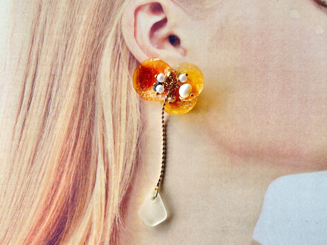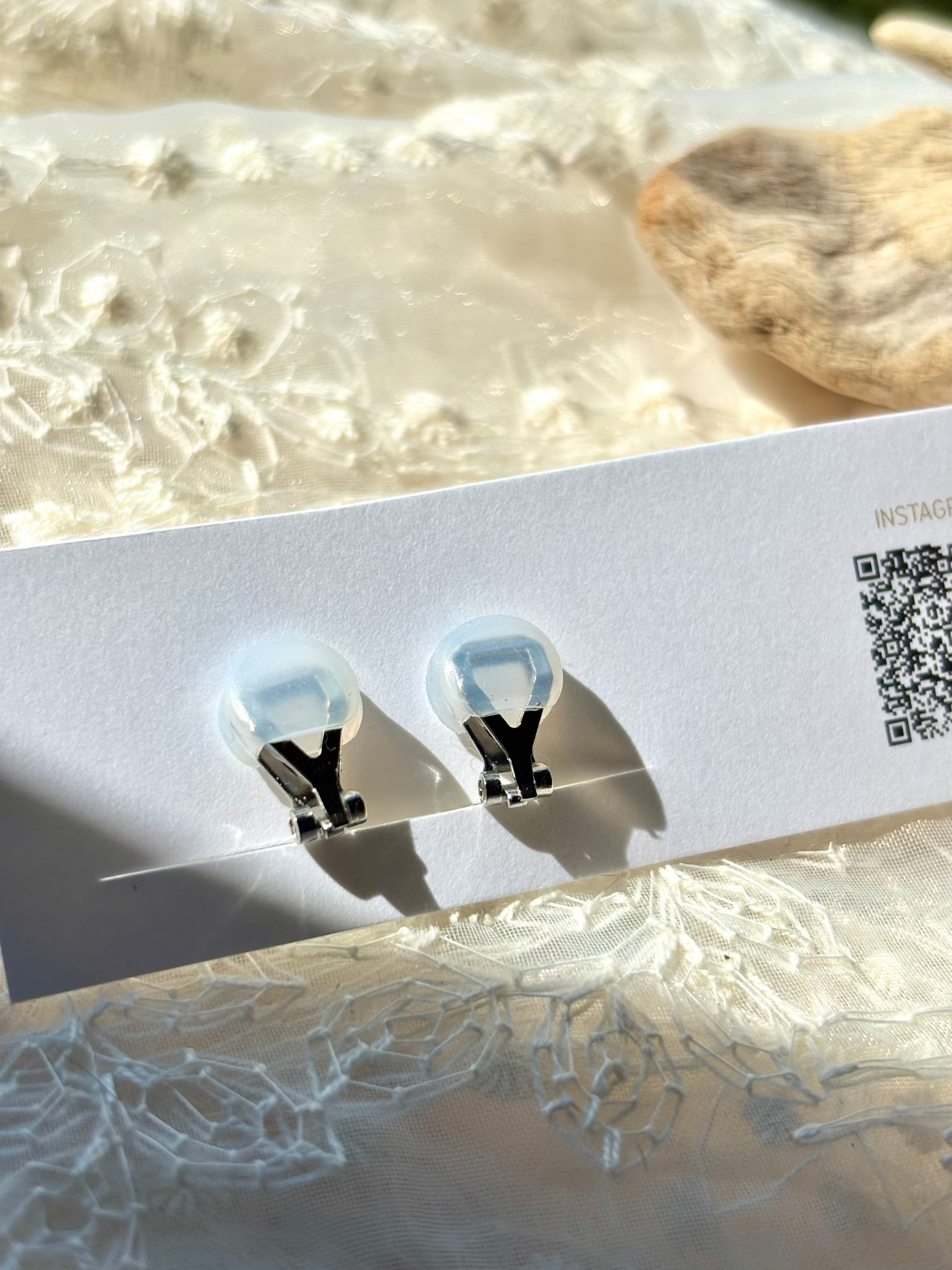 - ピアス金具はフック型とポスト型のシルバー925製のもので、アレルギーがでにくい素材で、銀製の柔らかい輝きがあります。イヤリングはクリップ式のアレルギー反応が出にくいロウジム素材です。痛くなりくいクリップ式で、ピアス派の方にもおすすめ。もちろん落ちにくいです。