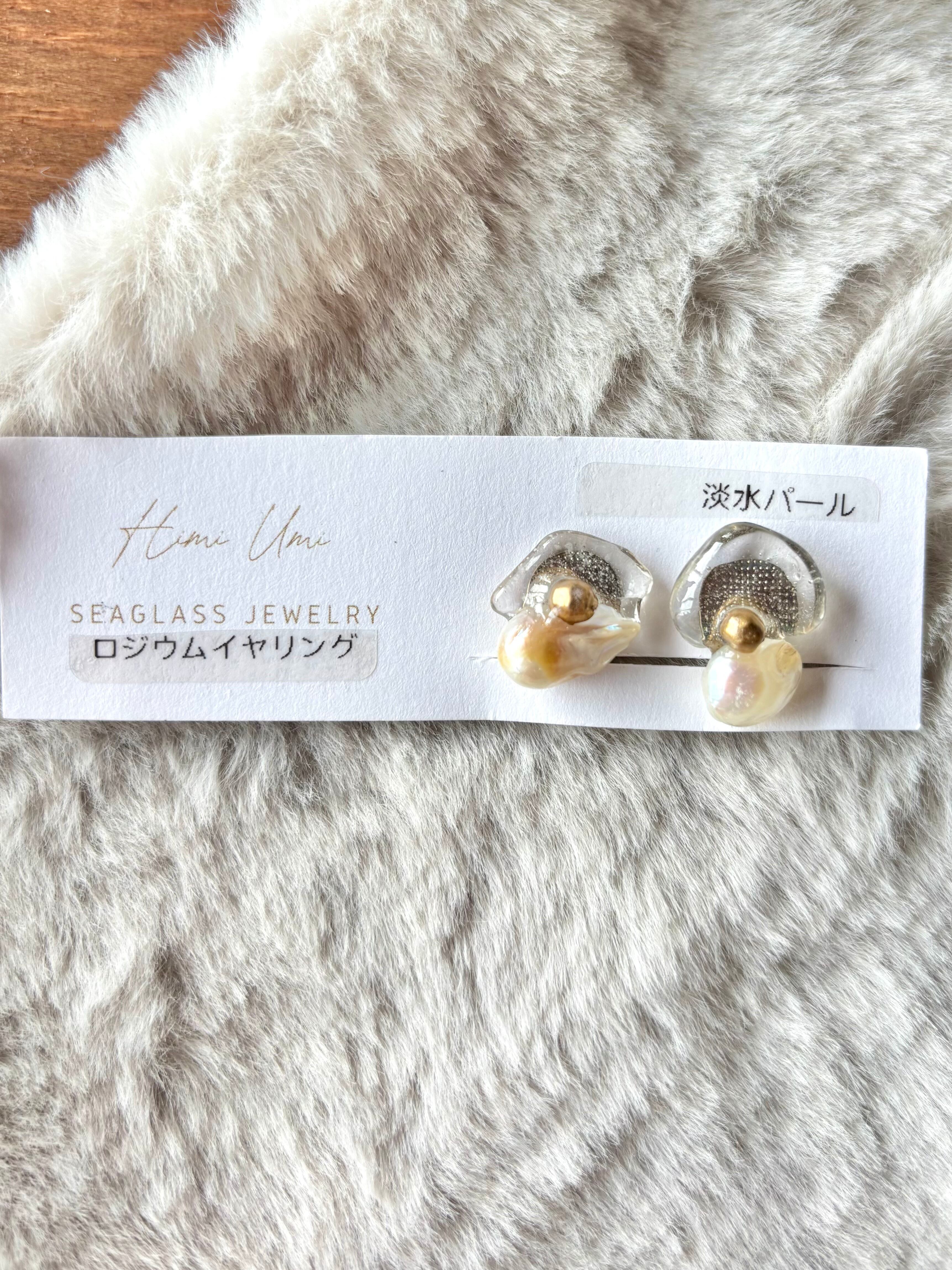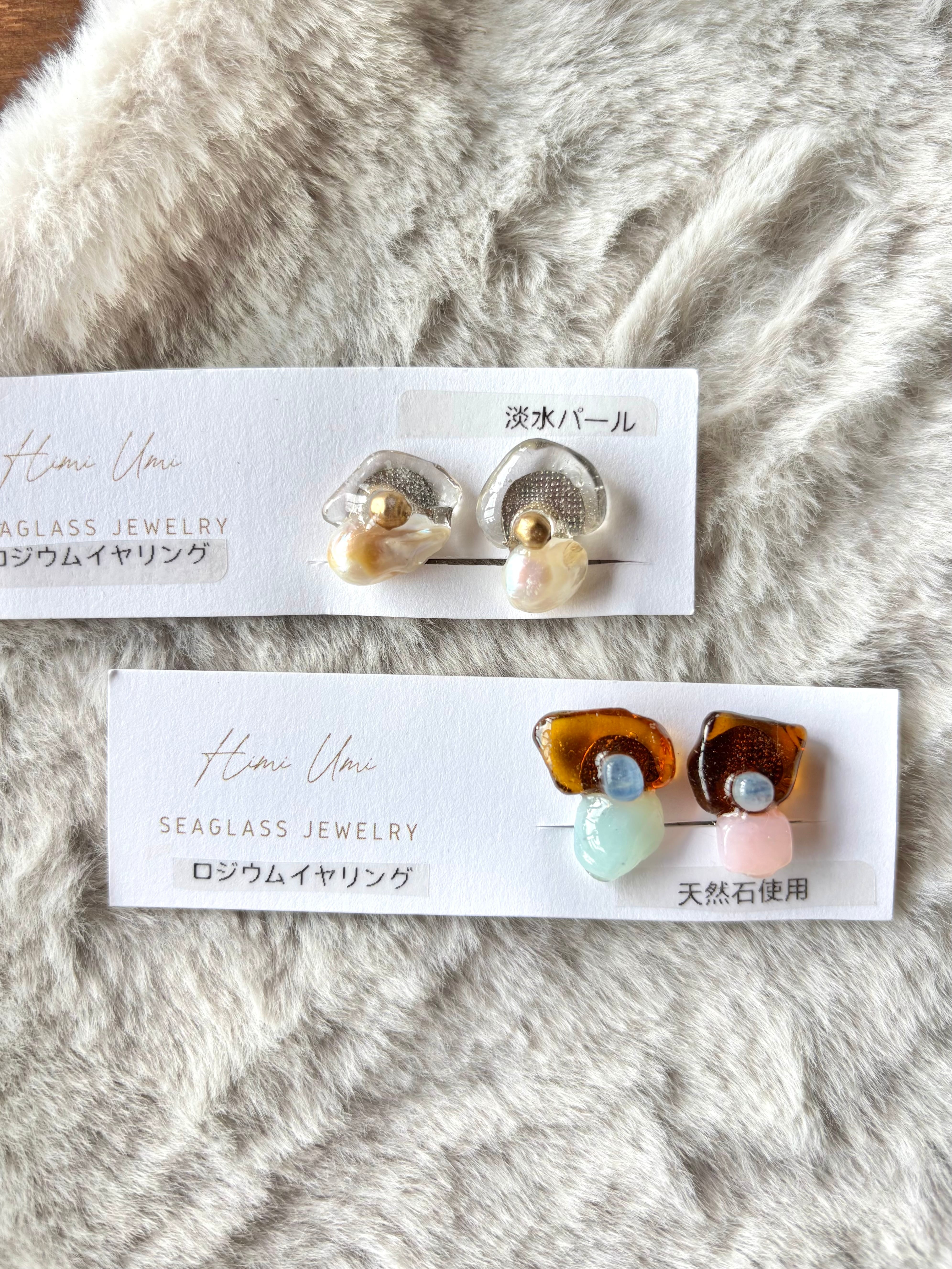 1点もののアクセサリー。氷見シーグラス定番イヤリング