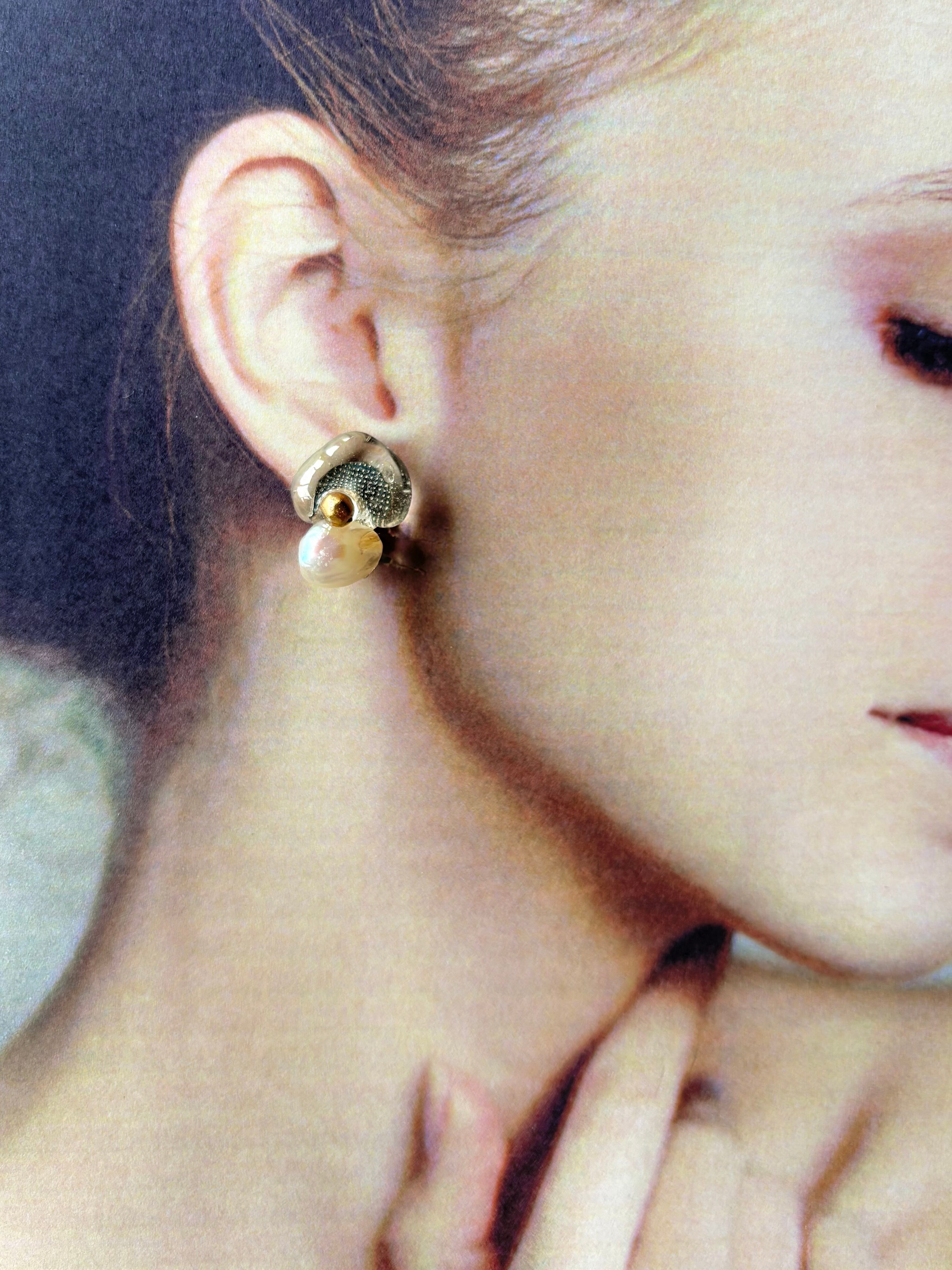 イヤリング*氷見シーグラスとパールno17