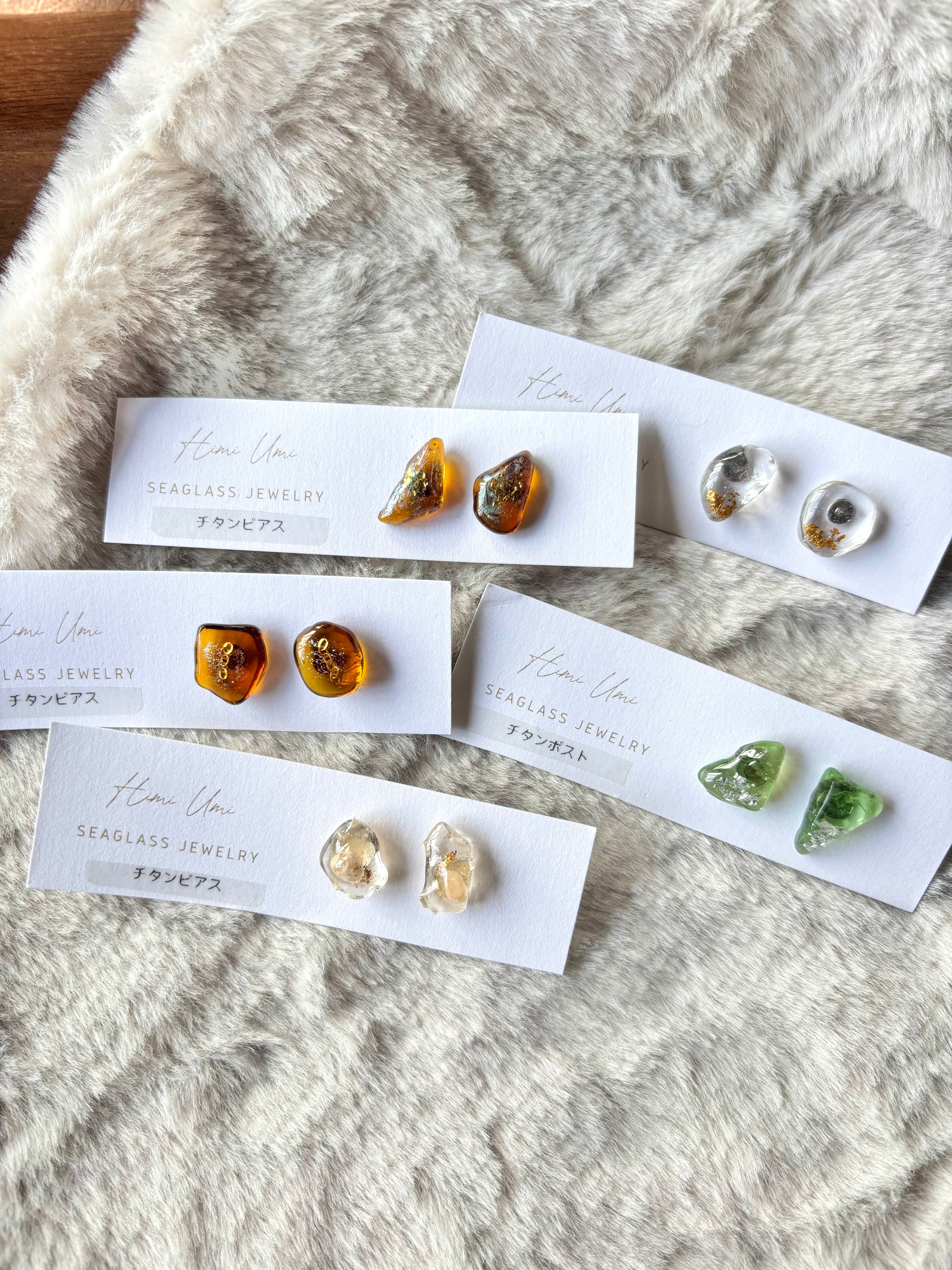 1点もののアクセサリー。氷見シーグラス定番ピアス