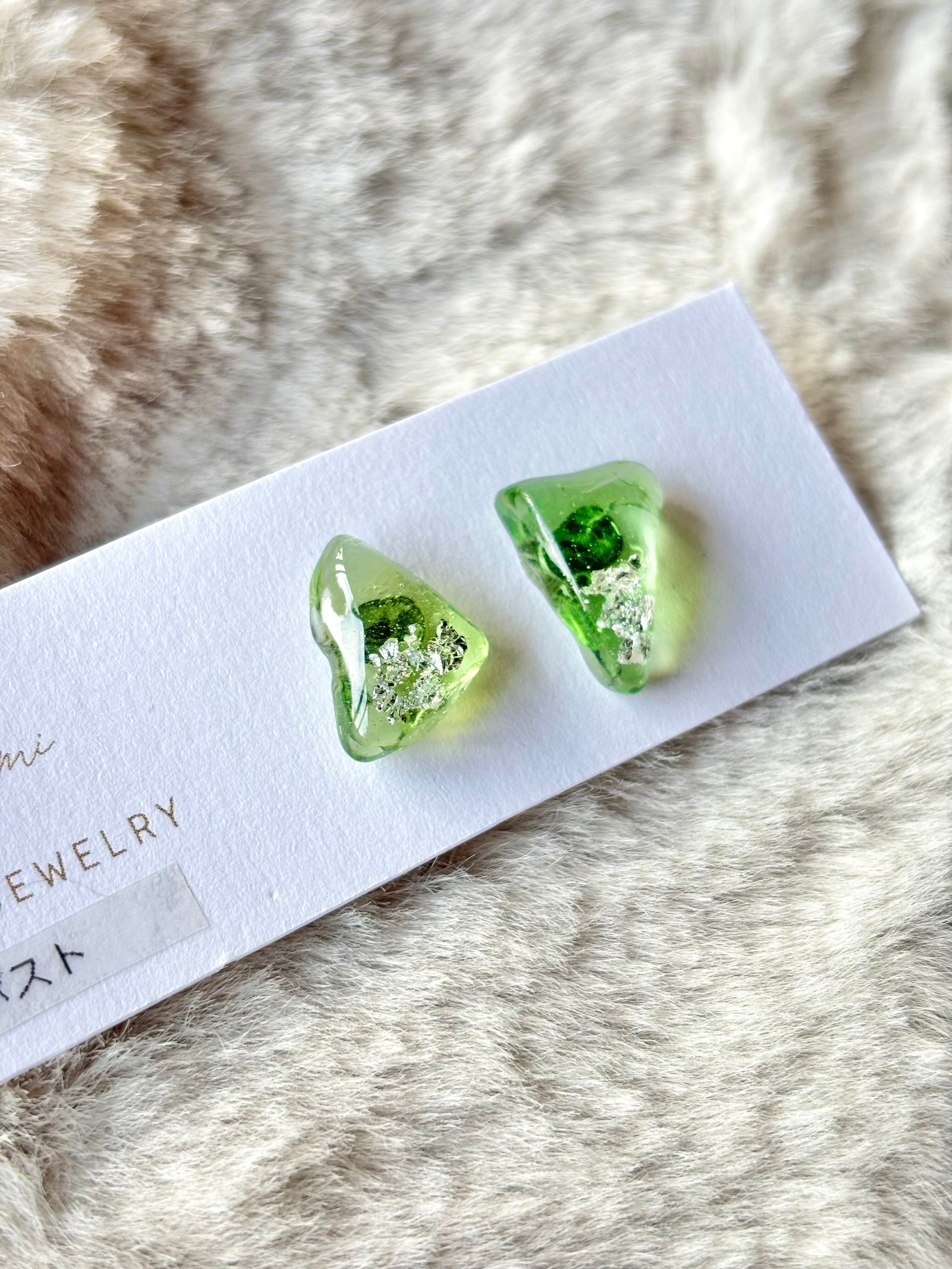 レジンじゃなくてガラス製。シンプルながらも目を引く耳元へ。