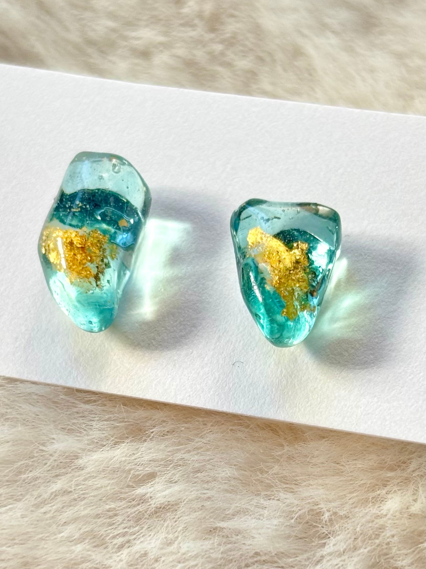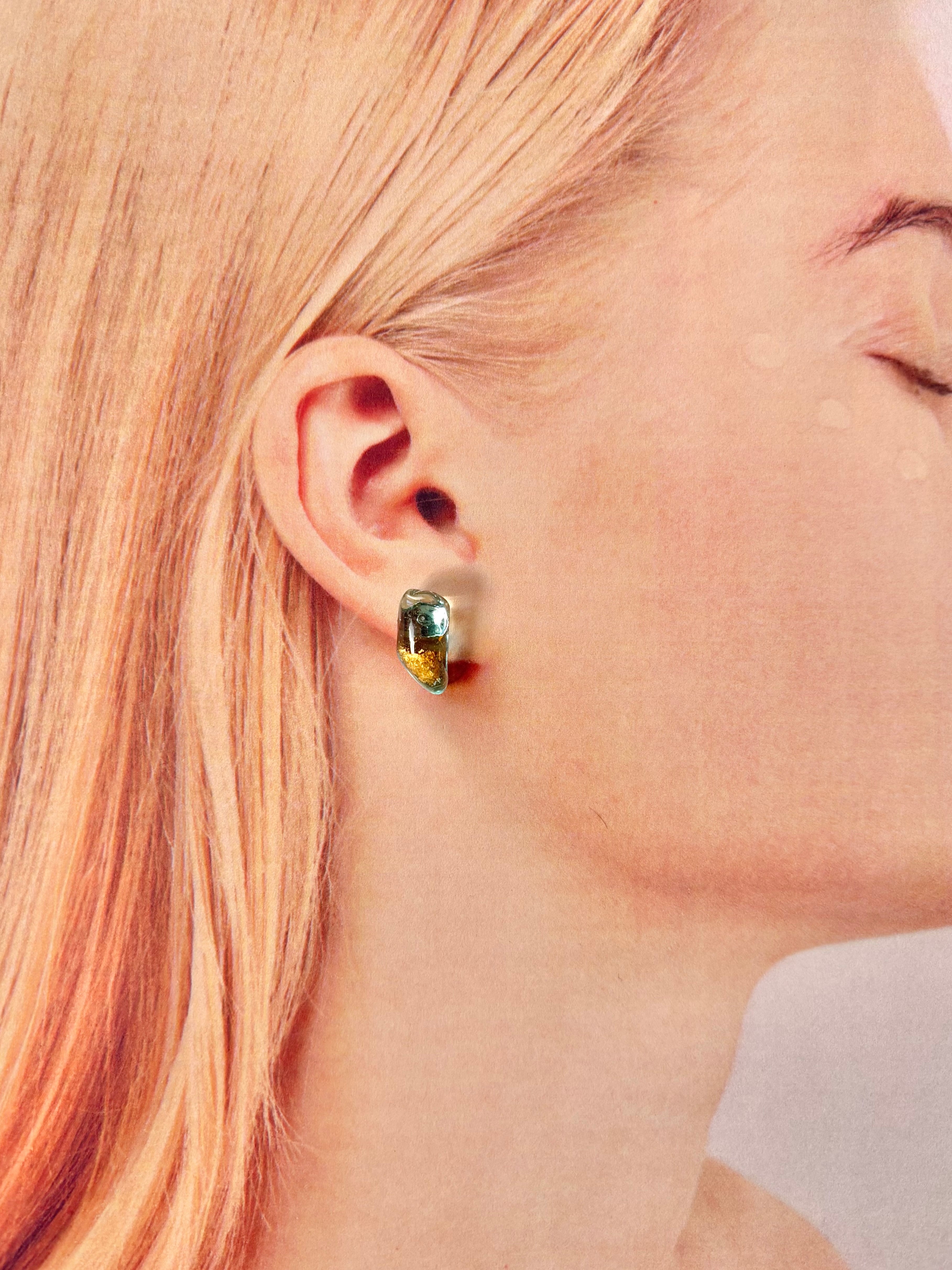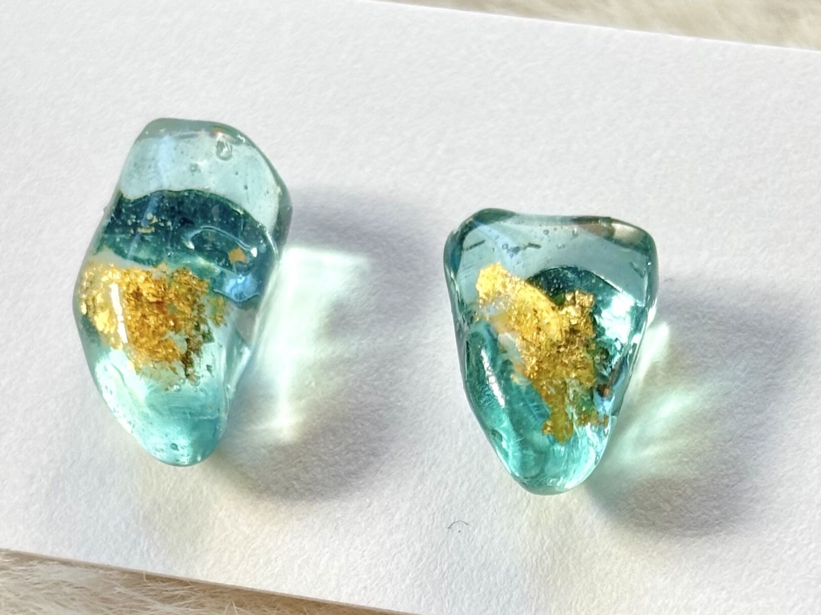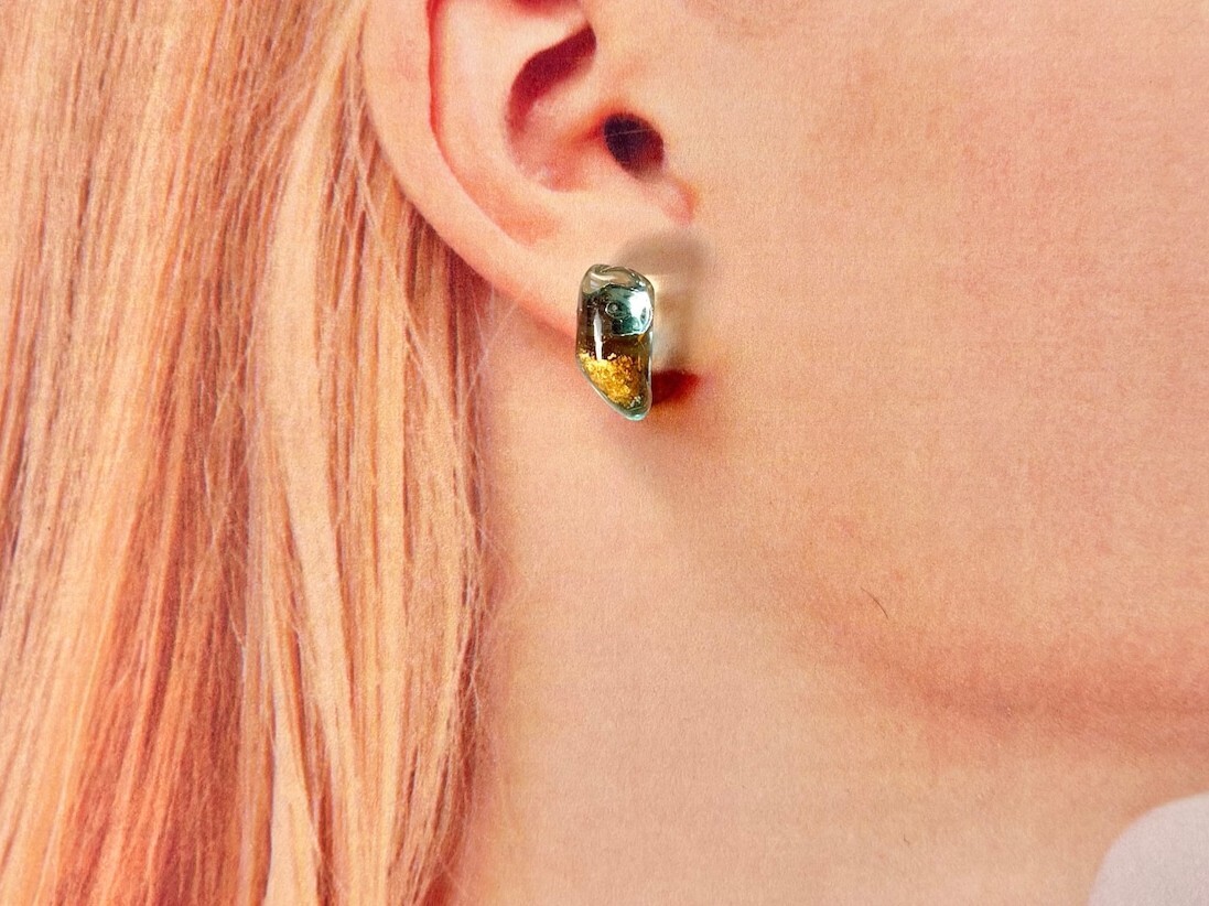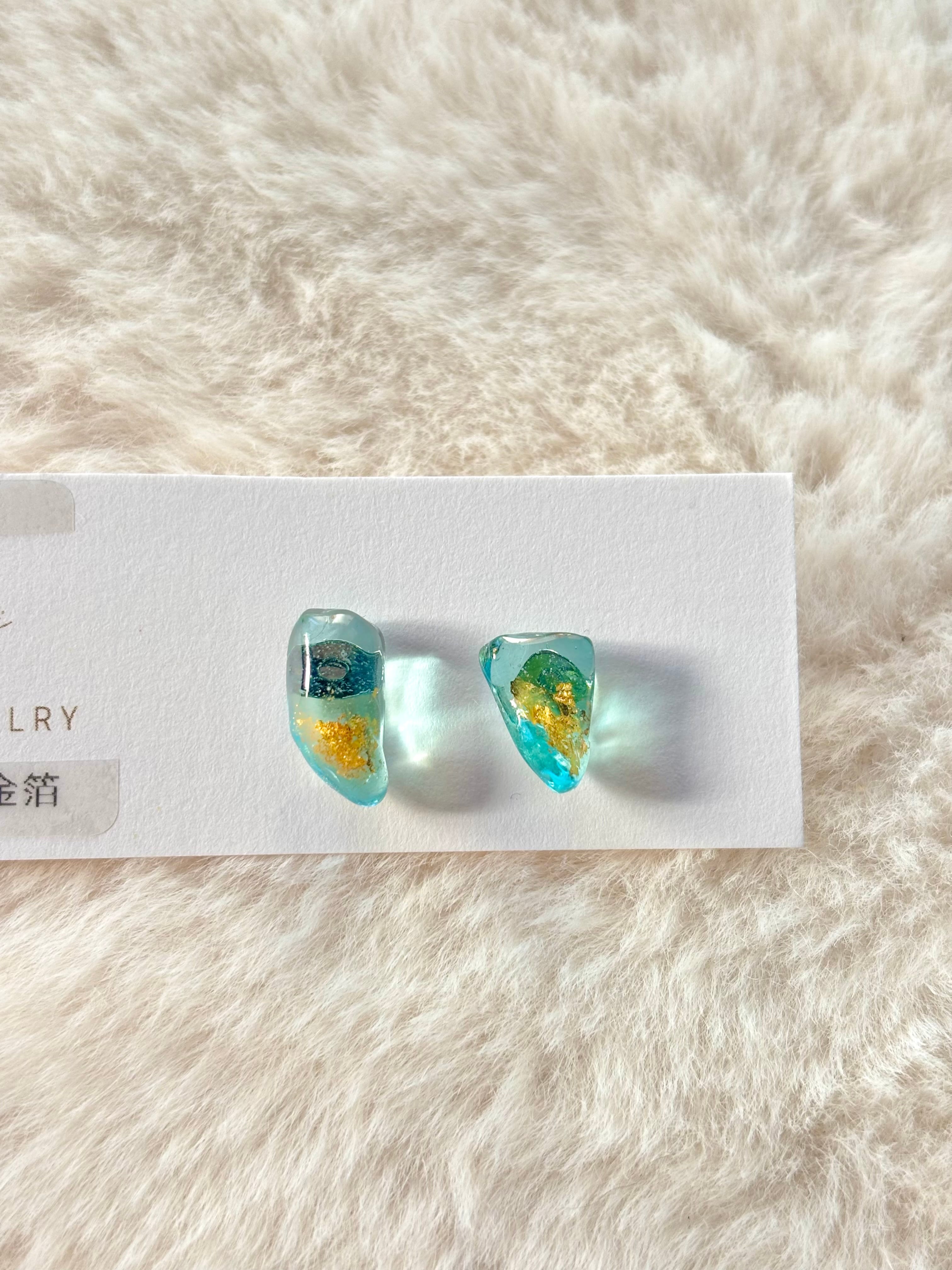 - クリアなライトブルーのシーグラスに金沢の金箔をのせてより華やかな耳元へ。
