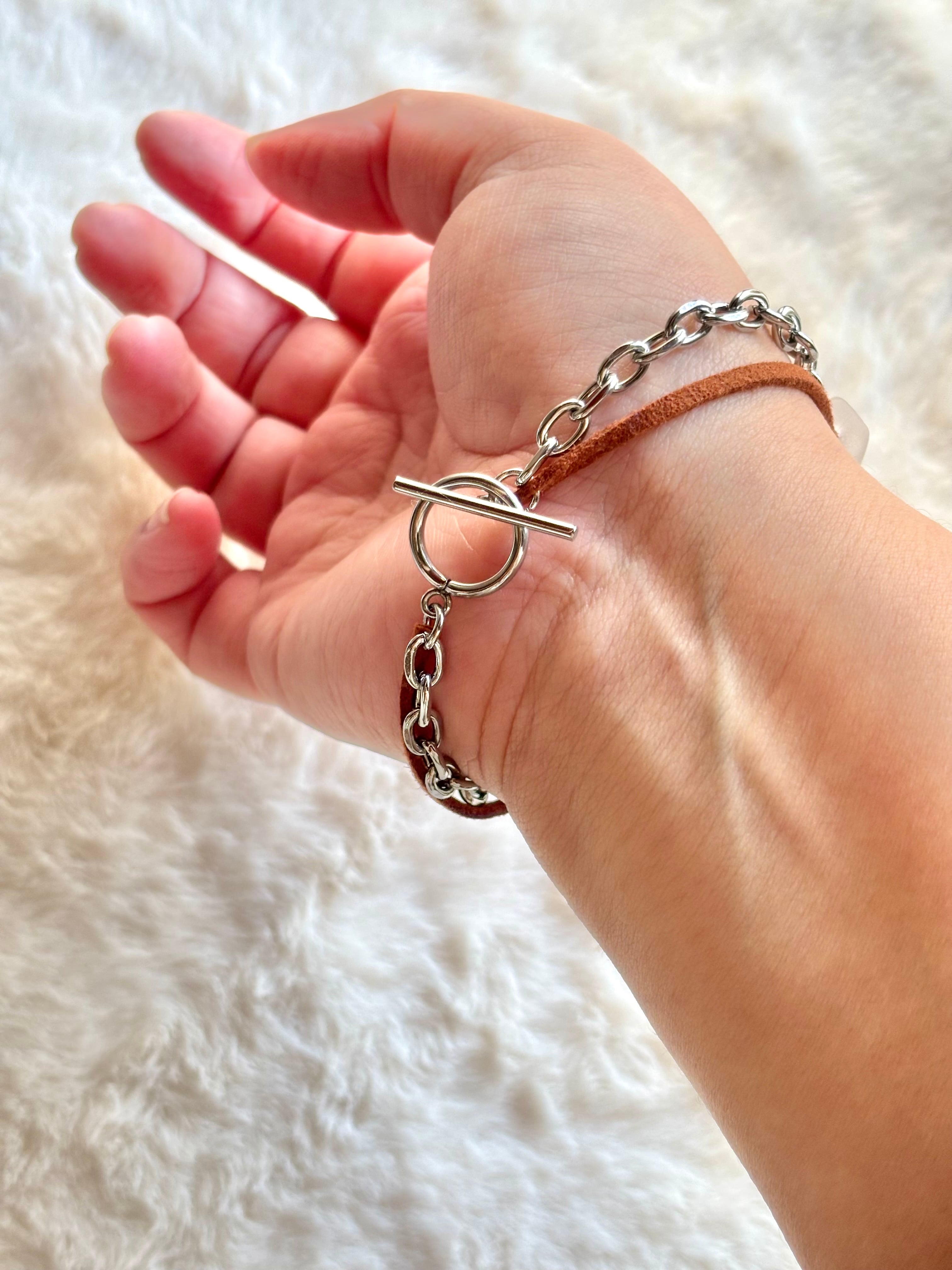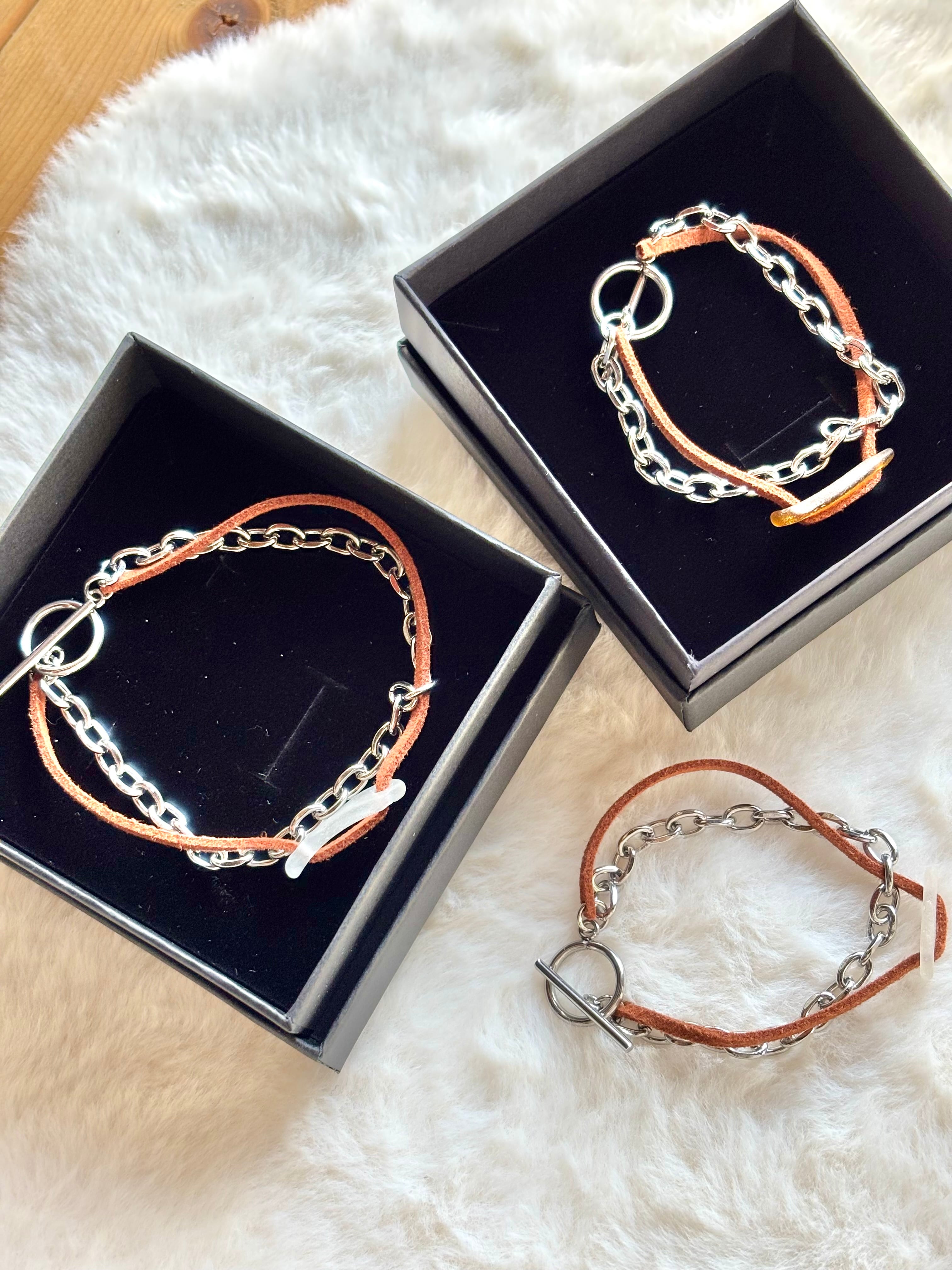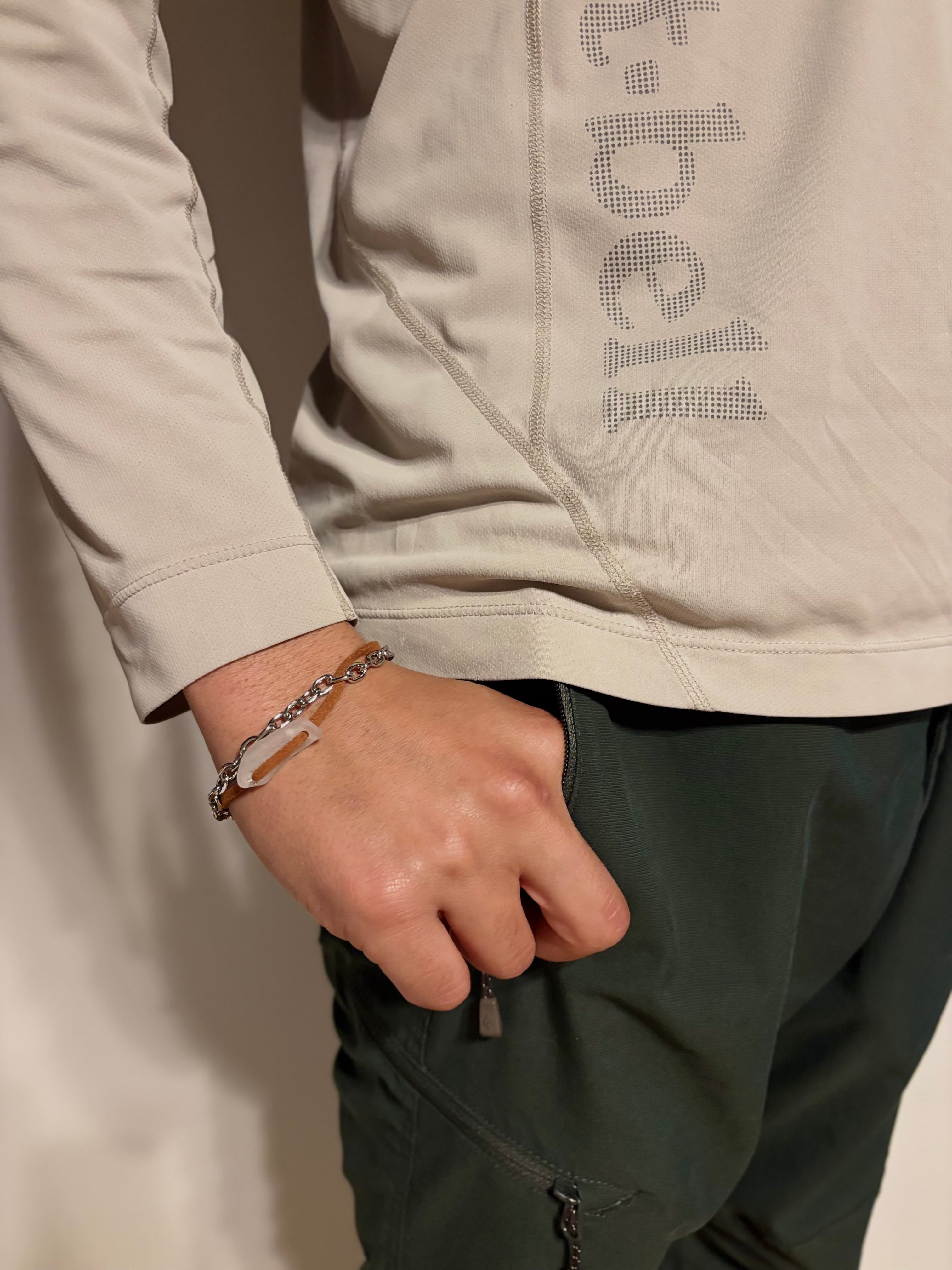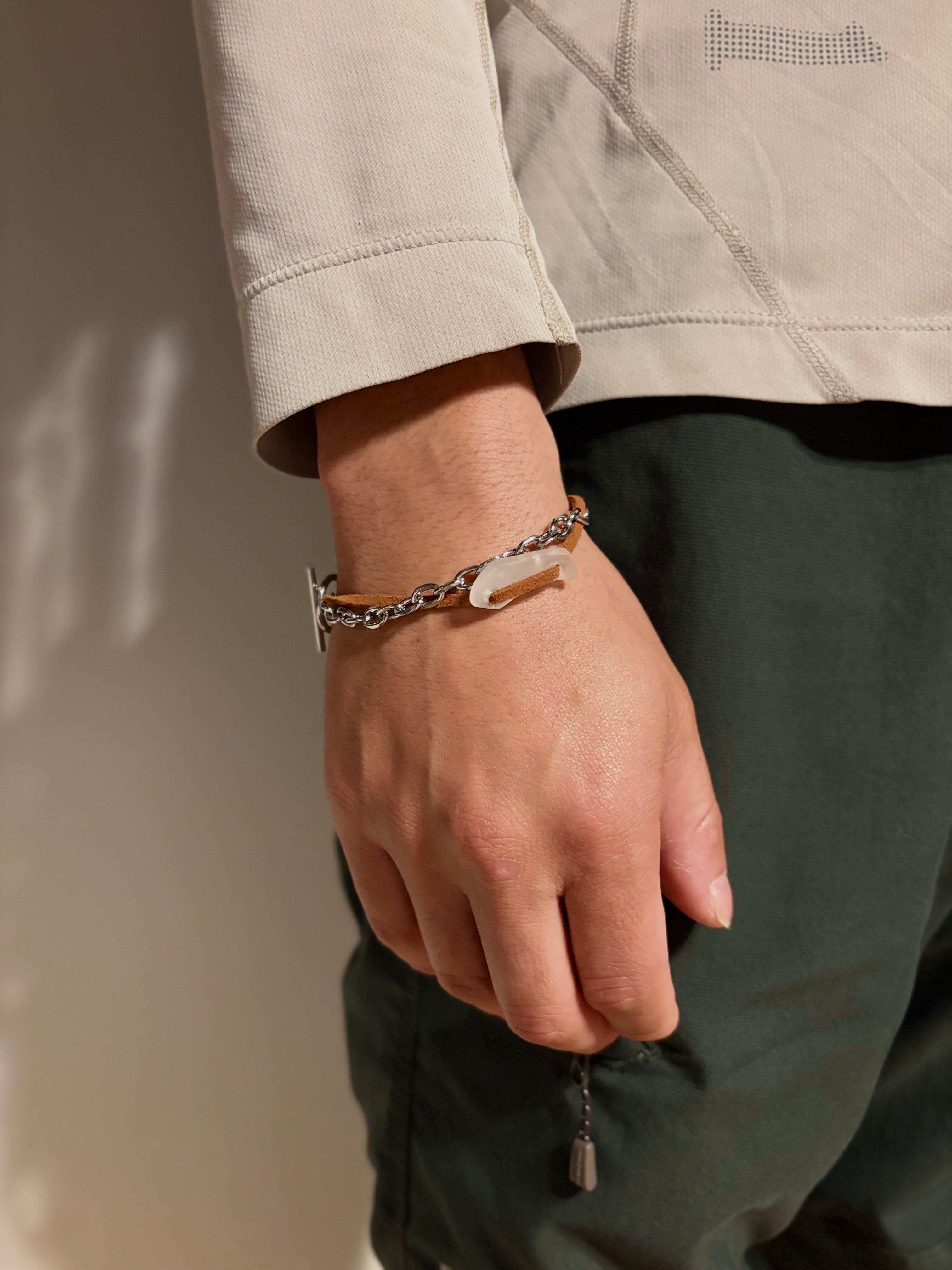 ‐チェーンはステンレス、レザーの紐を使用しています。