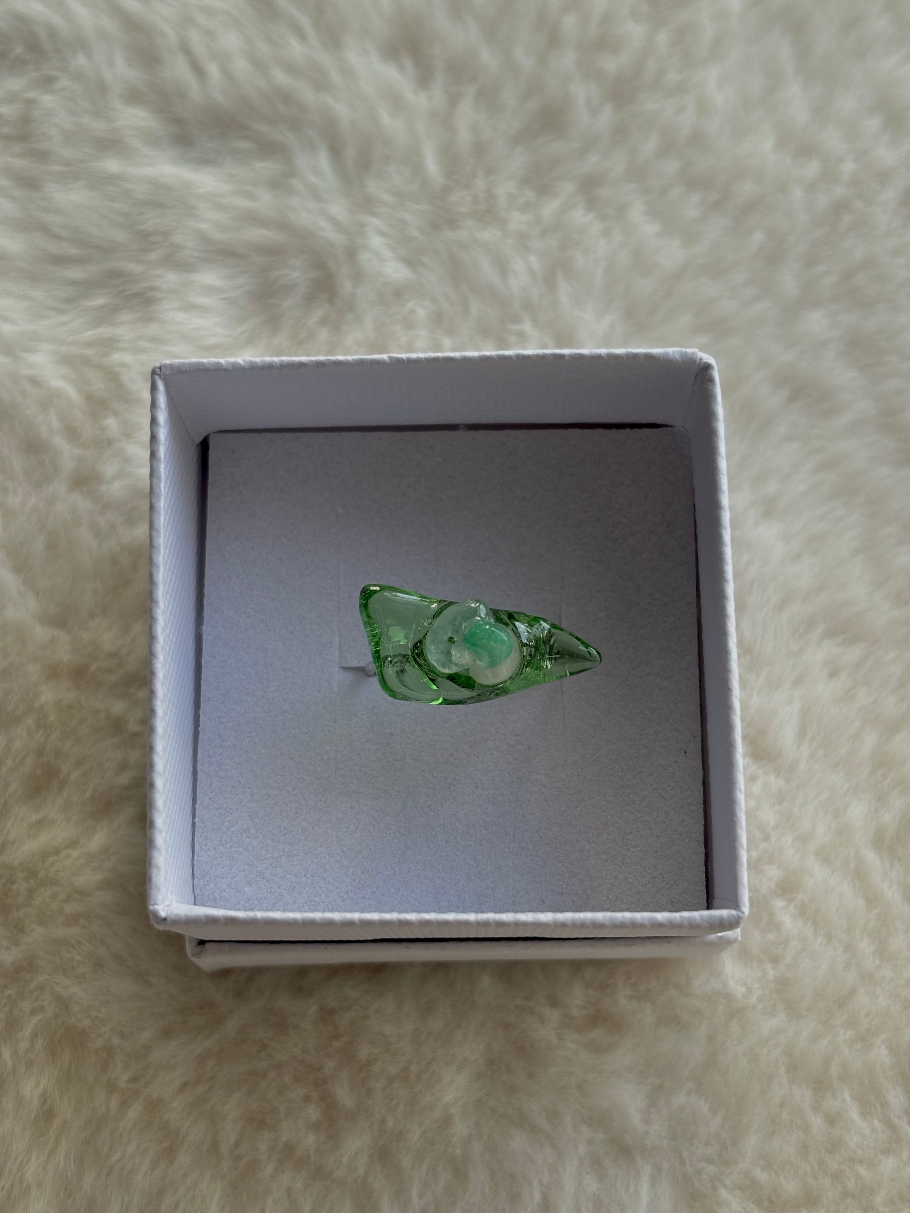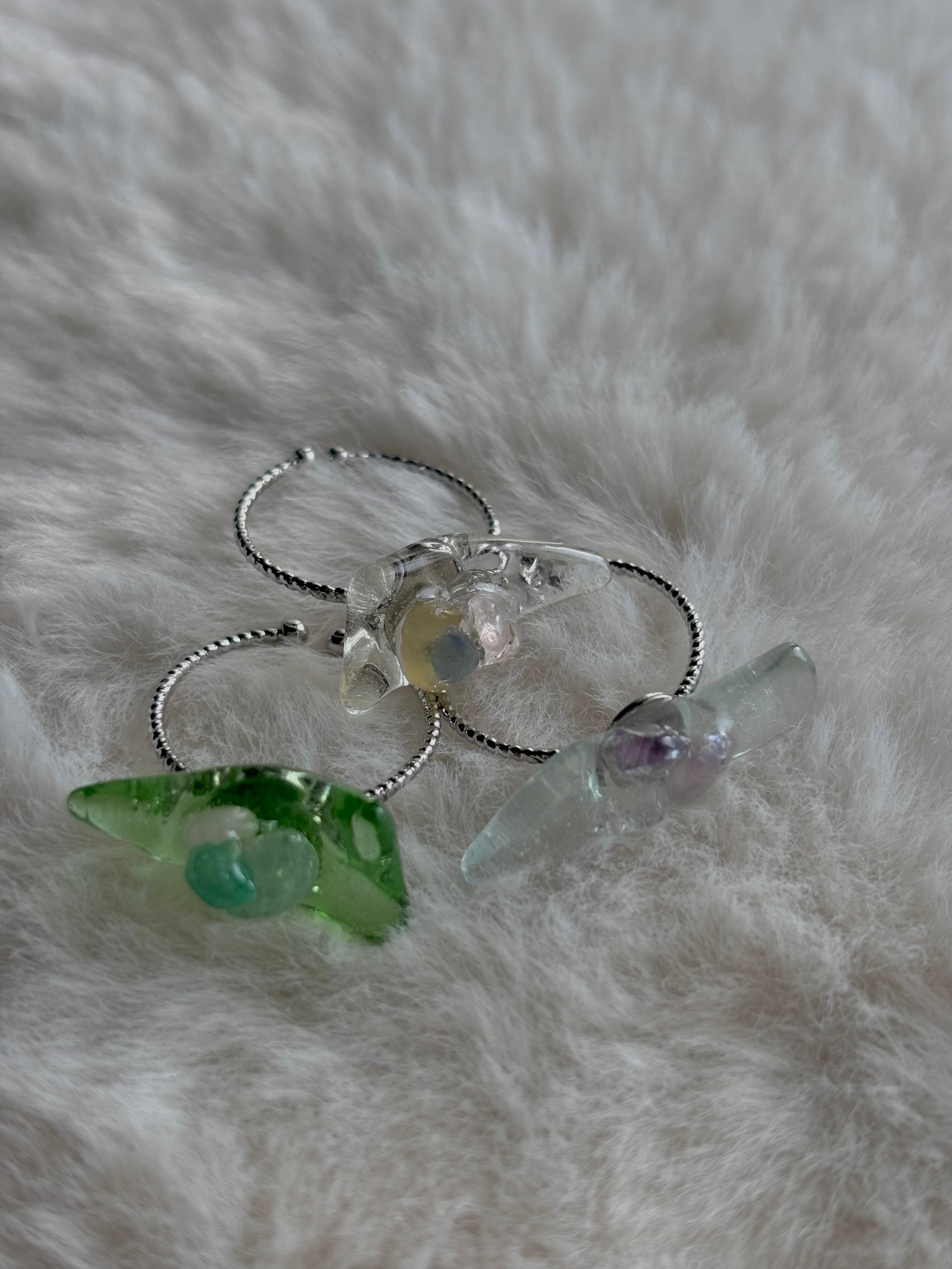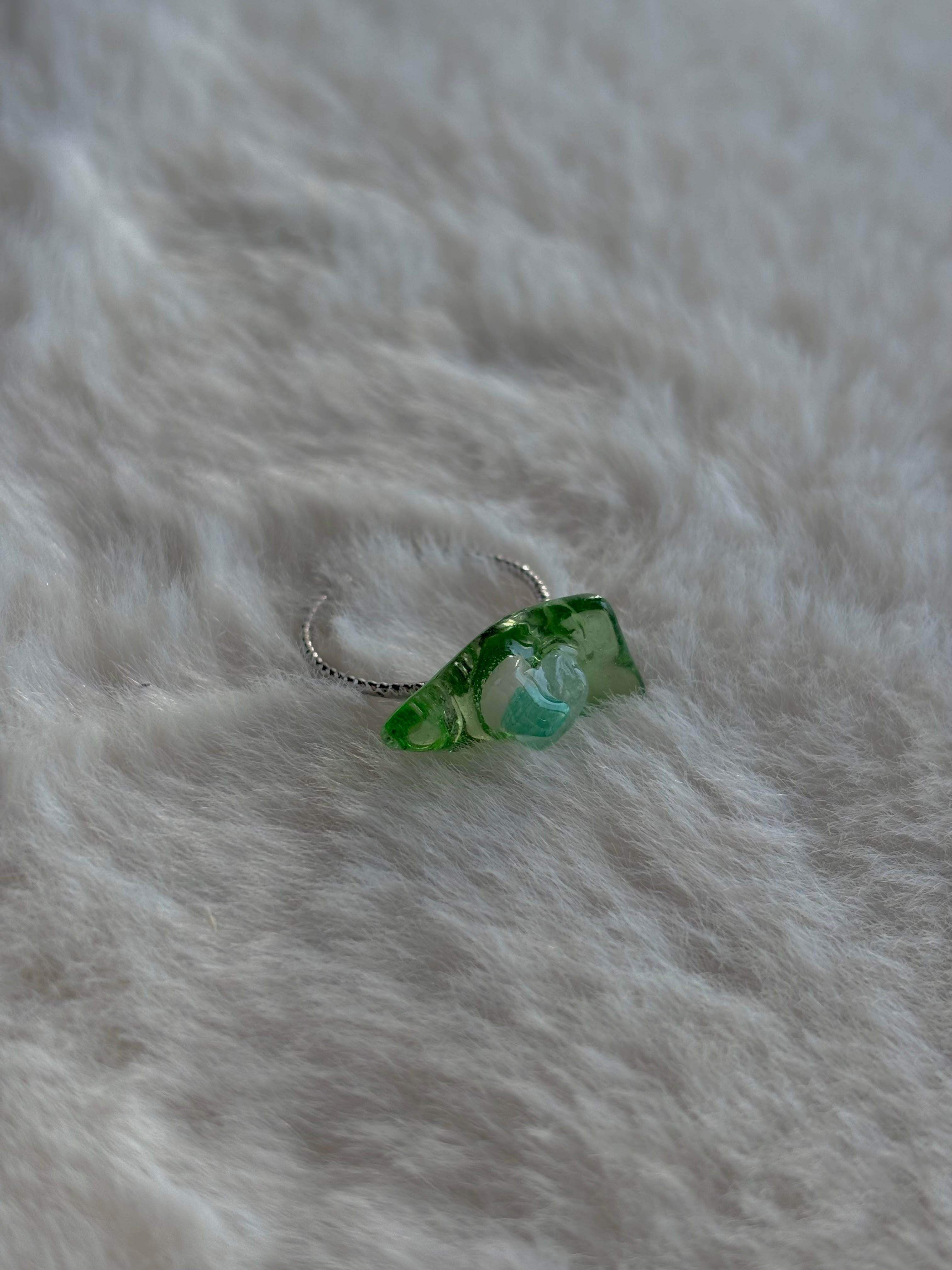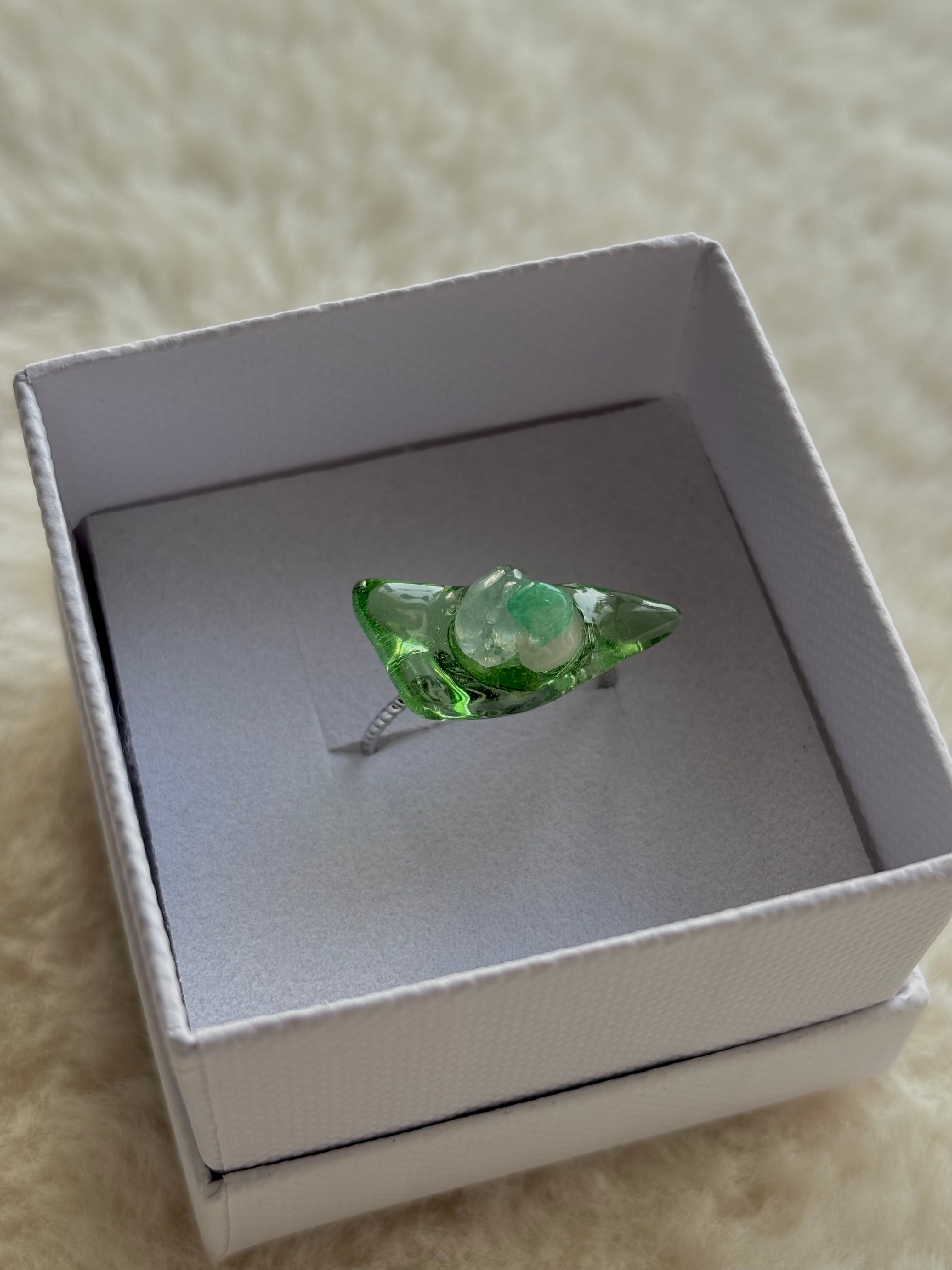 - シーグラスに天然石を載せ、よりきらめきを増したリングです。
