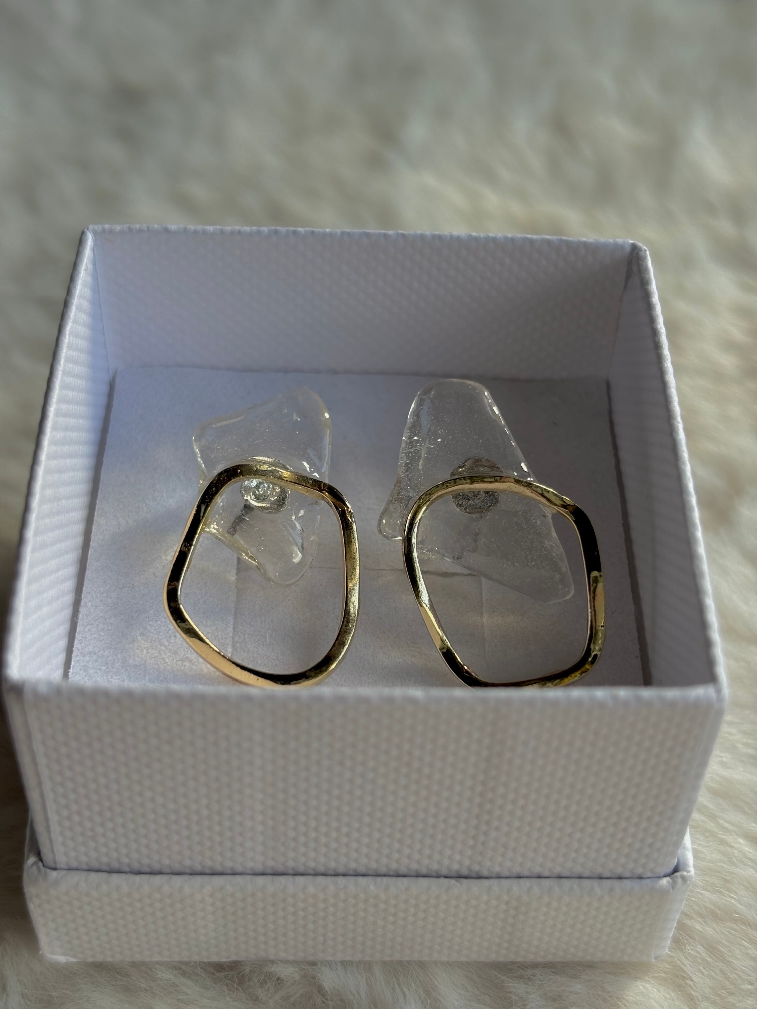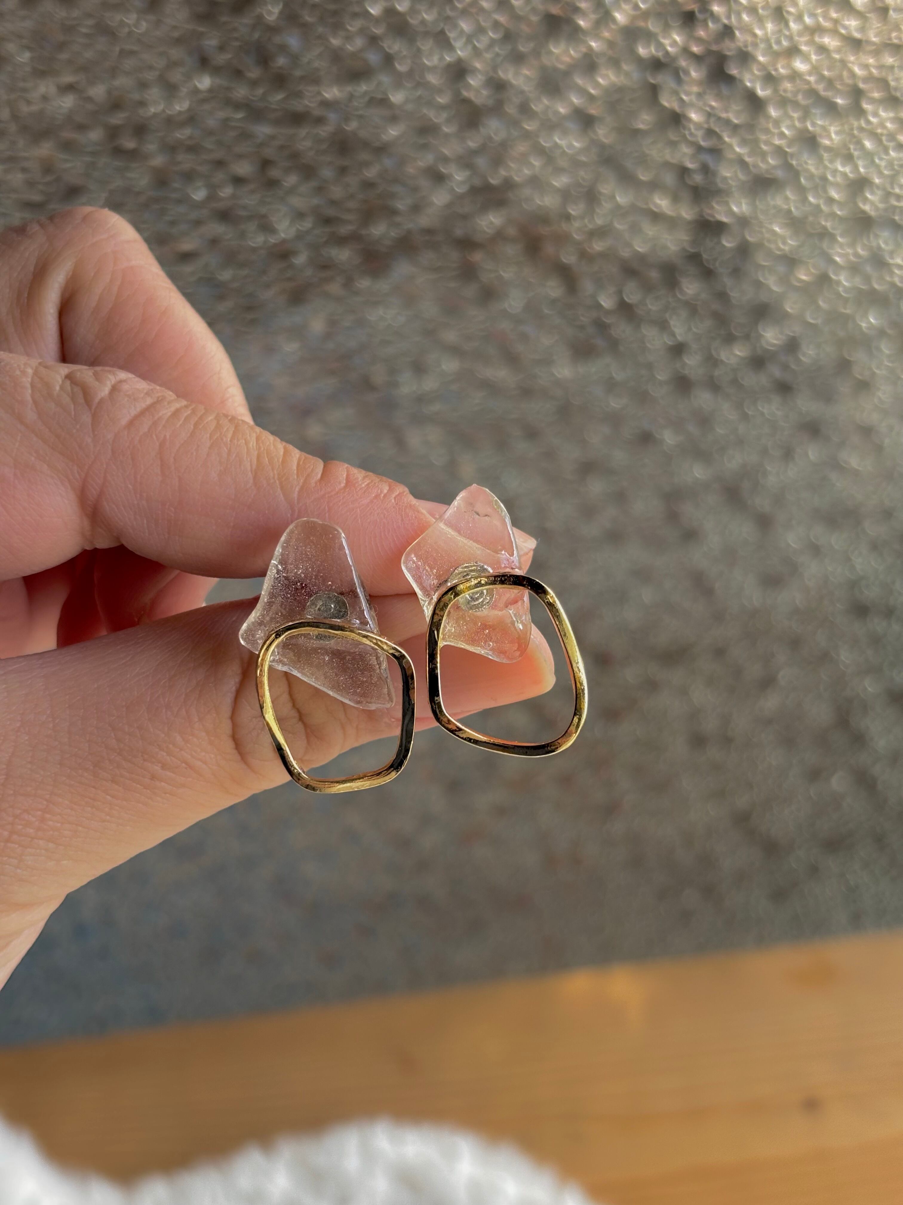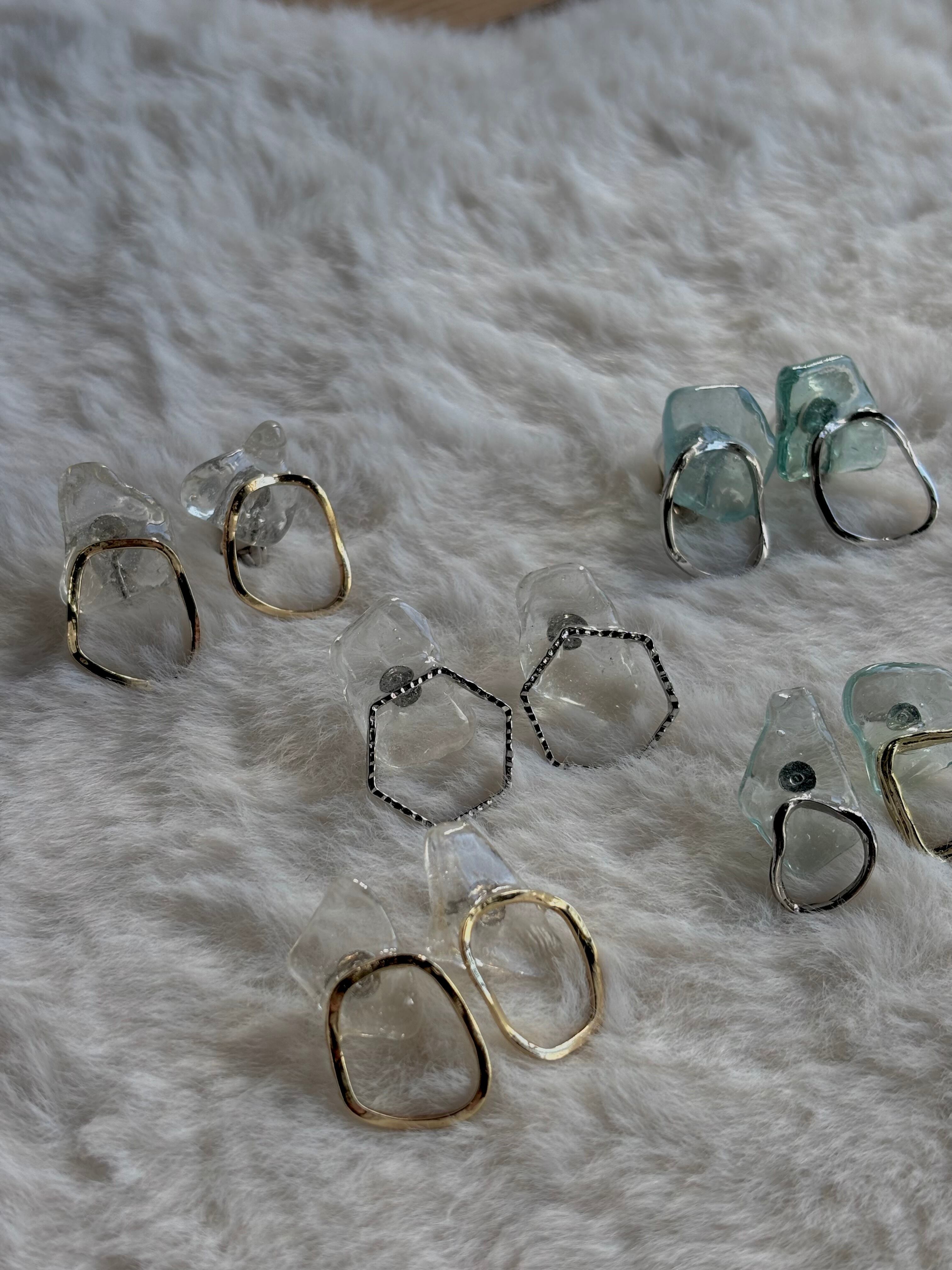クリア色シーグラス中粒ピアス