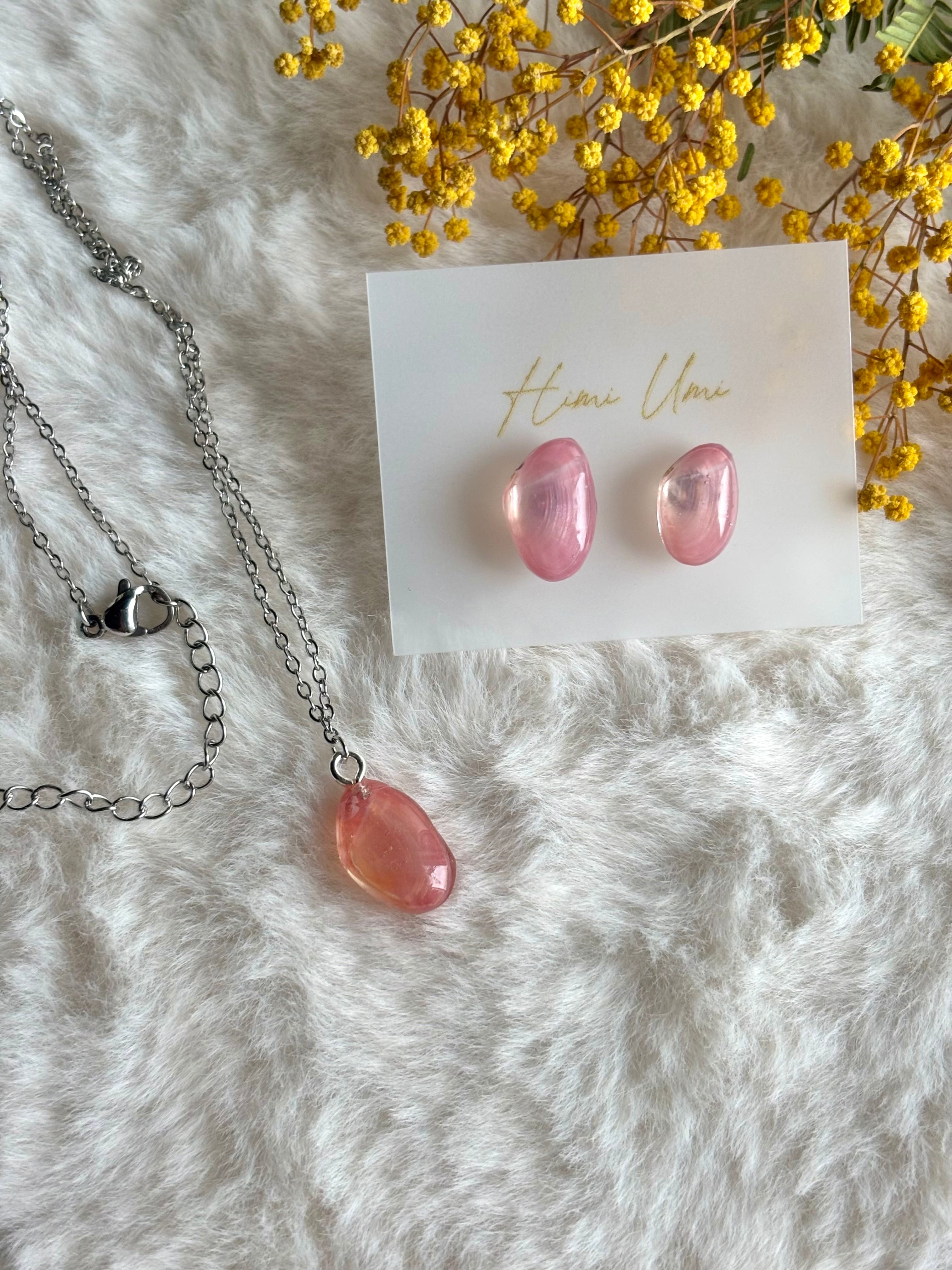 - 厳選したサクラガイをひとつぶネックレスに仕立てました。