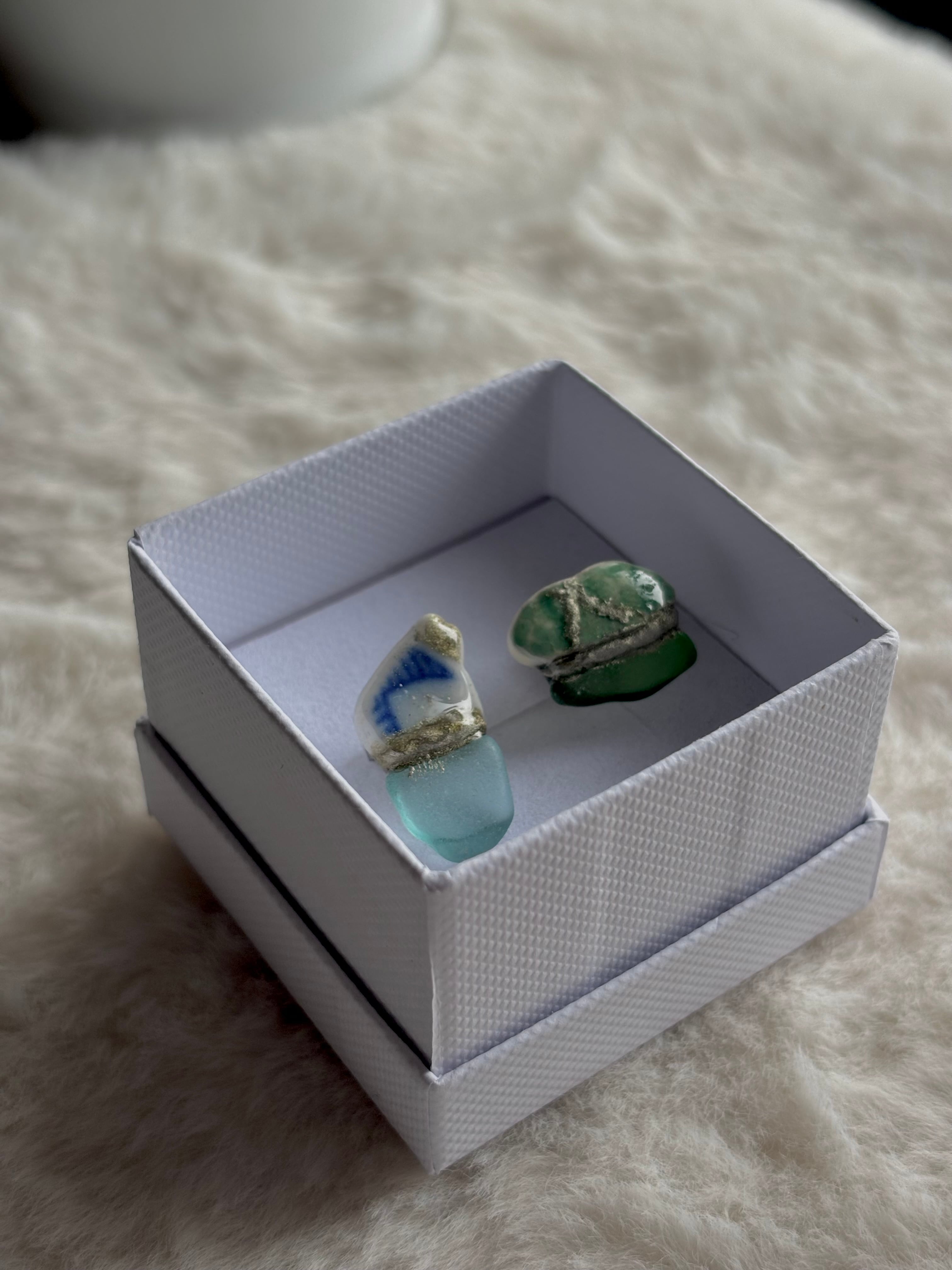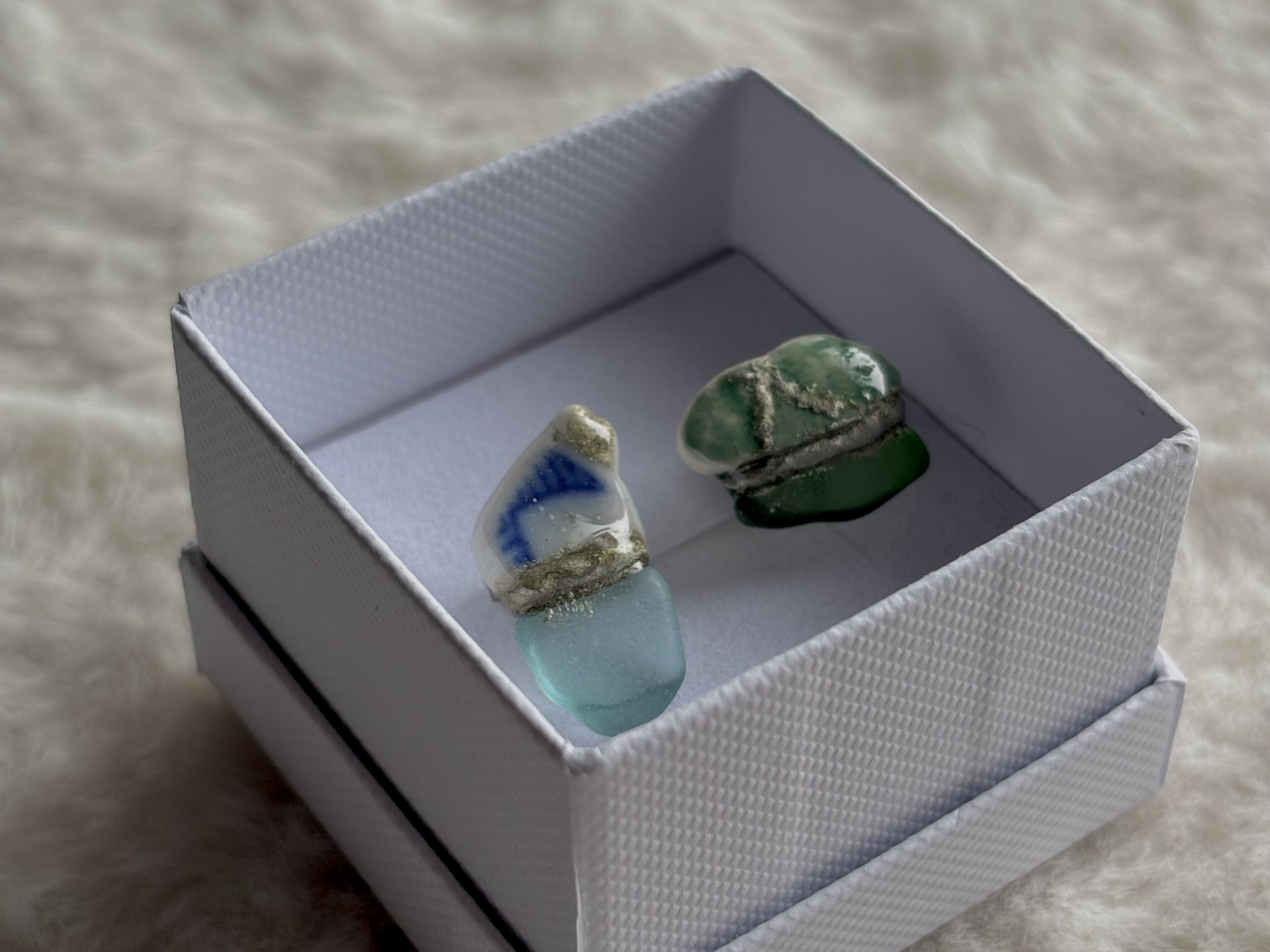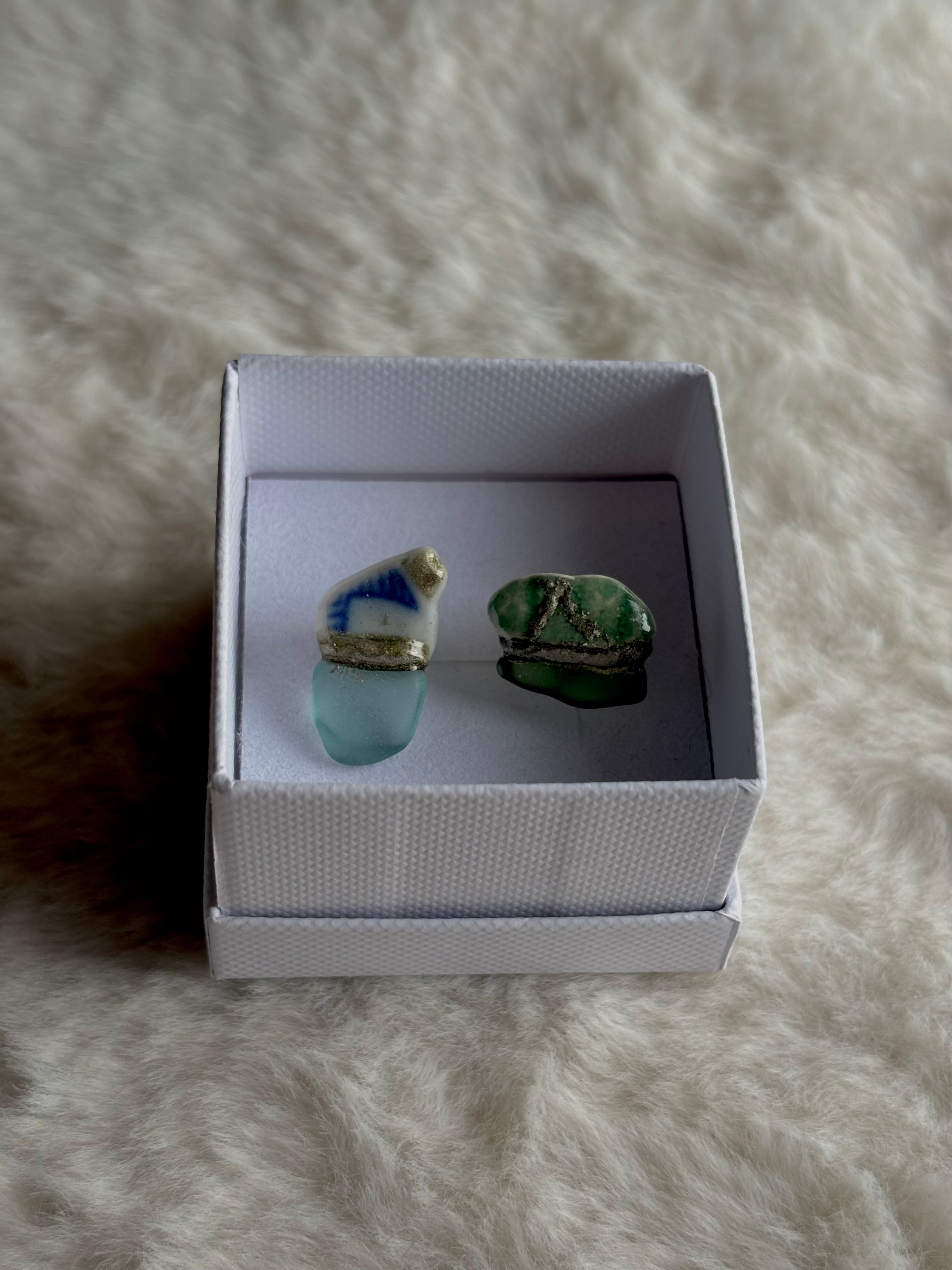【シー陶器とは】シー陶器とは海の漂着陶器片のことです。誰かが落としたり捨てた陶器が割れて破片となり、波に揉まれると角が取れていきます。海の中を何年もさまよい、やがて砂浜へと戻ってきます。それらがシー陶器と呼ばれています。Himi Umiはすべて氷見の海でみつけたシー陶器を使って制作しています。