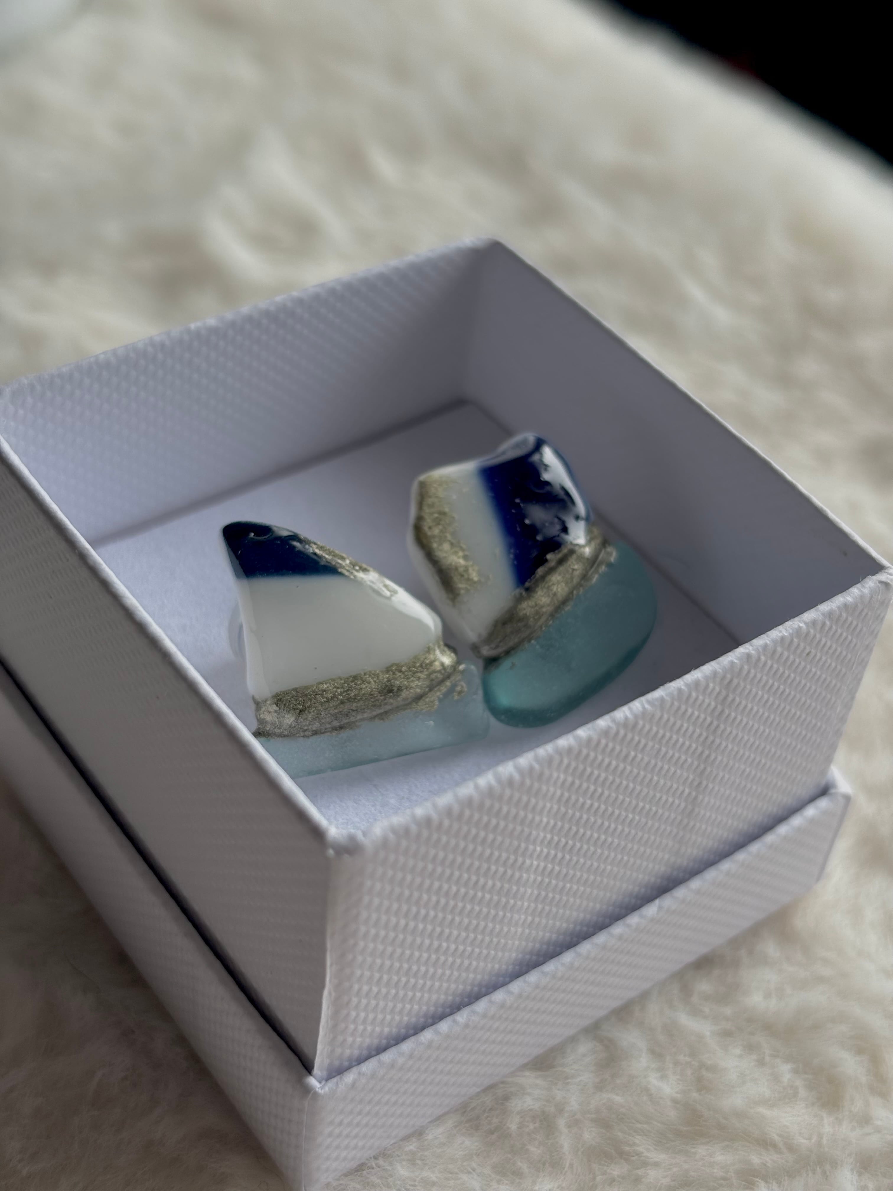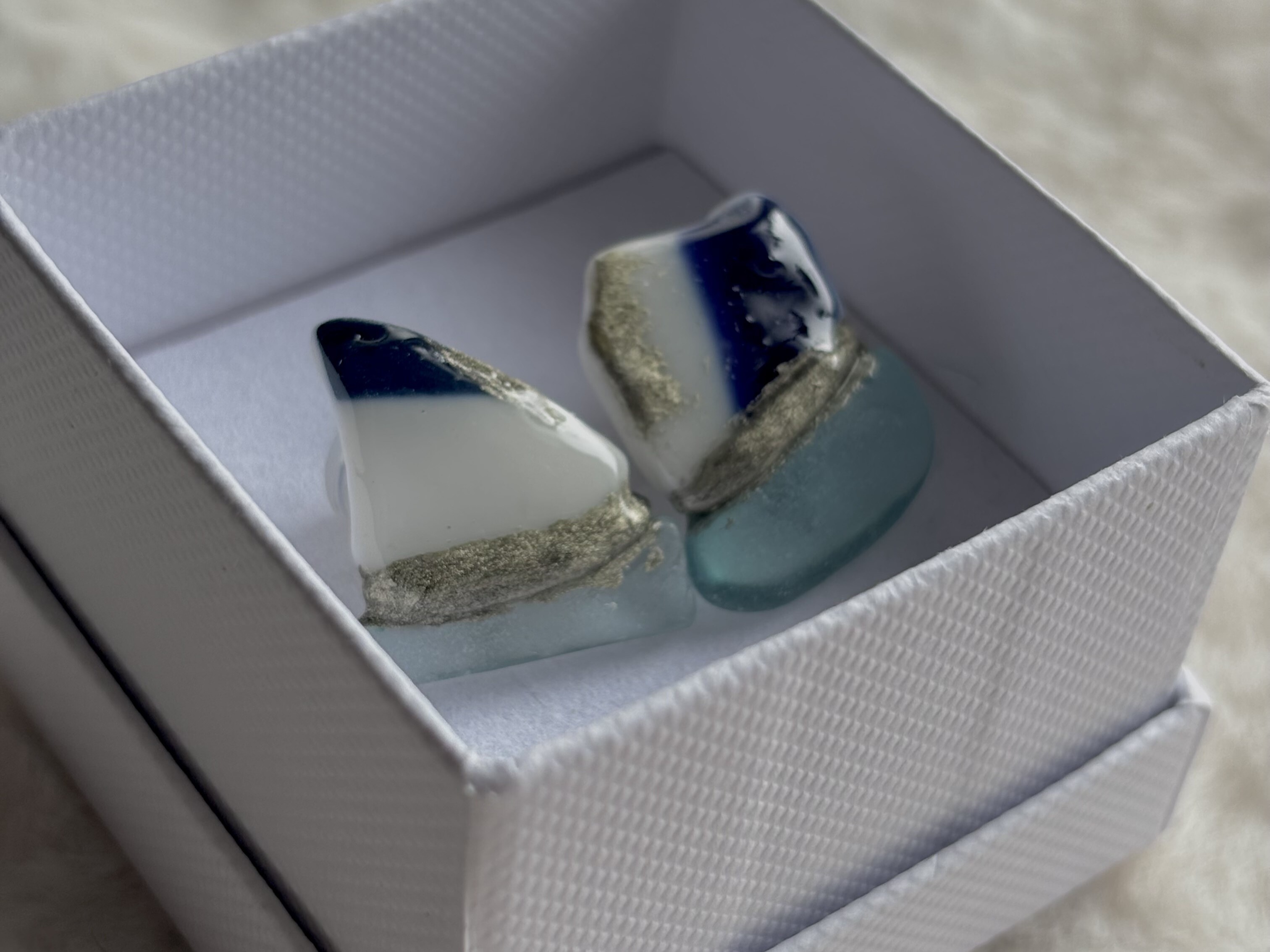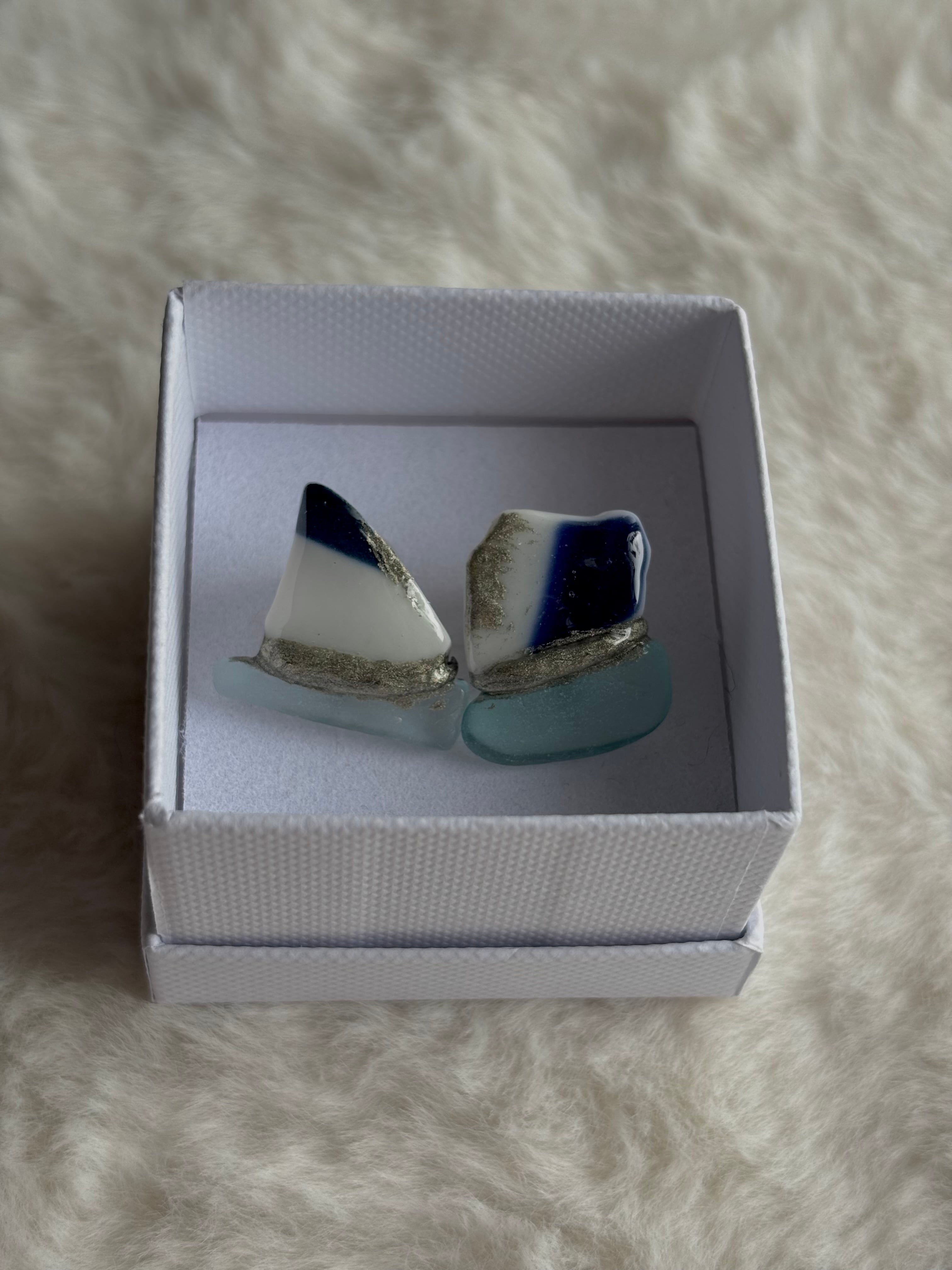 - シー陶器を錫継ぎ技法でシーグラスと継ないだデザインです。シー陶器の柄が一期一会の特徴です。