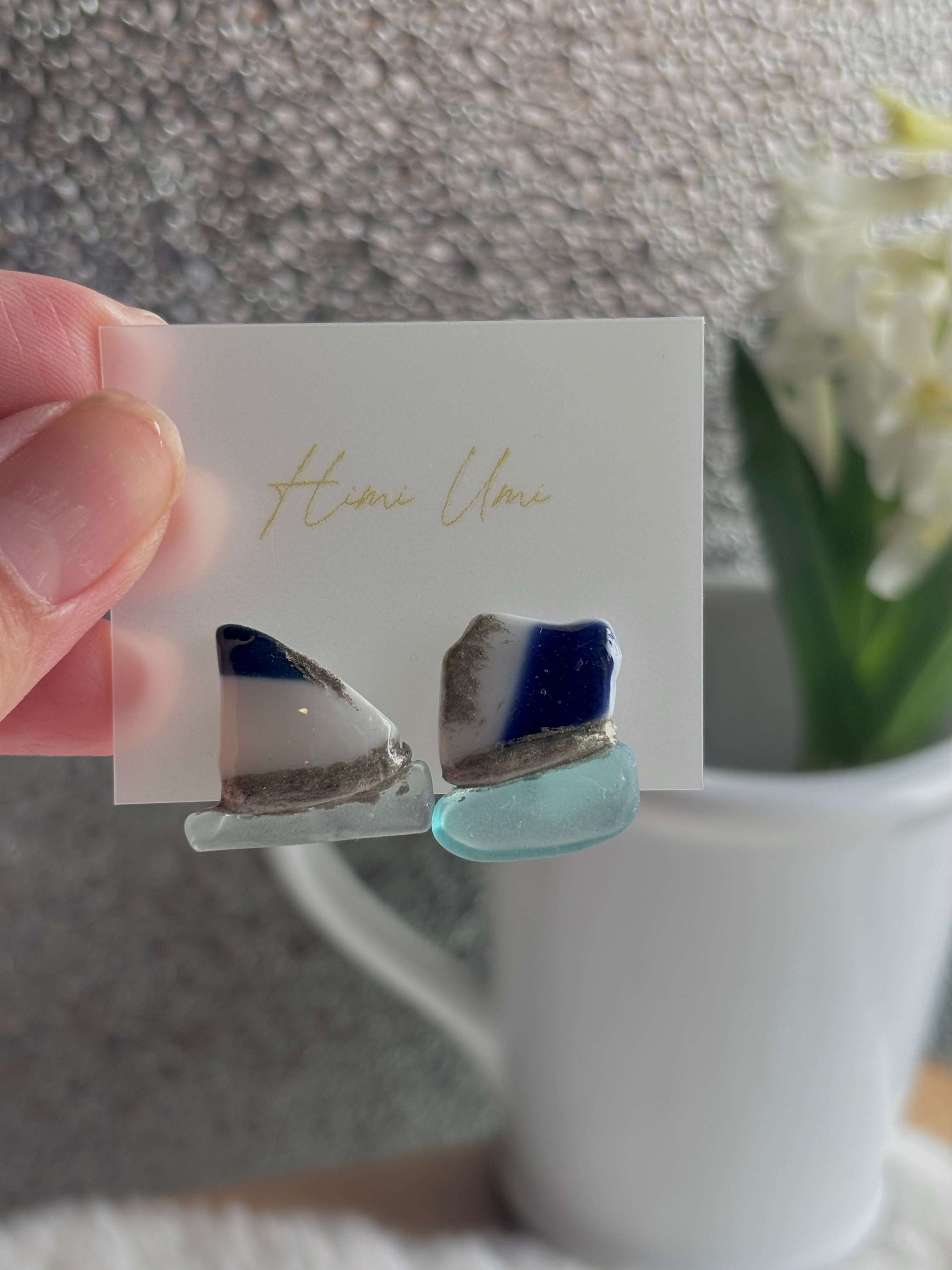 【シー陶器とは】シー陶器とは海の漂着陶器片のことです。誰かが落としたり捨てた陶器が割れて破片となり、波に揉まれると角が取れていきます。海の中を何年もさまよい、やがて砂浜へと戻ってきます。それらがシー陶器と呼ばれています。Himi Umiはすべて氷見の海でみつけたシー陶器を使って制作しています。