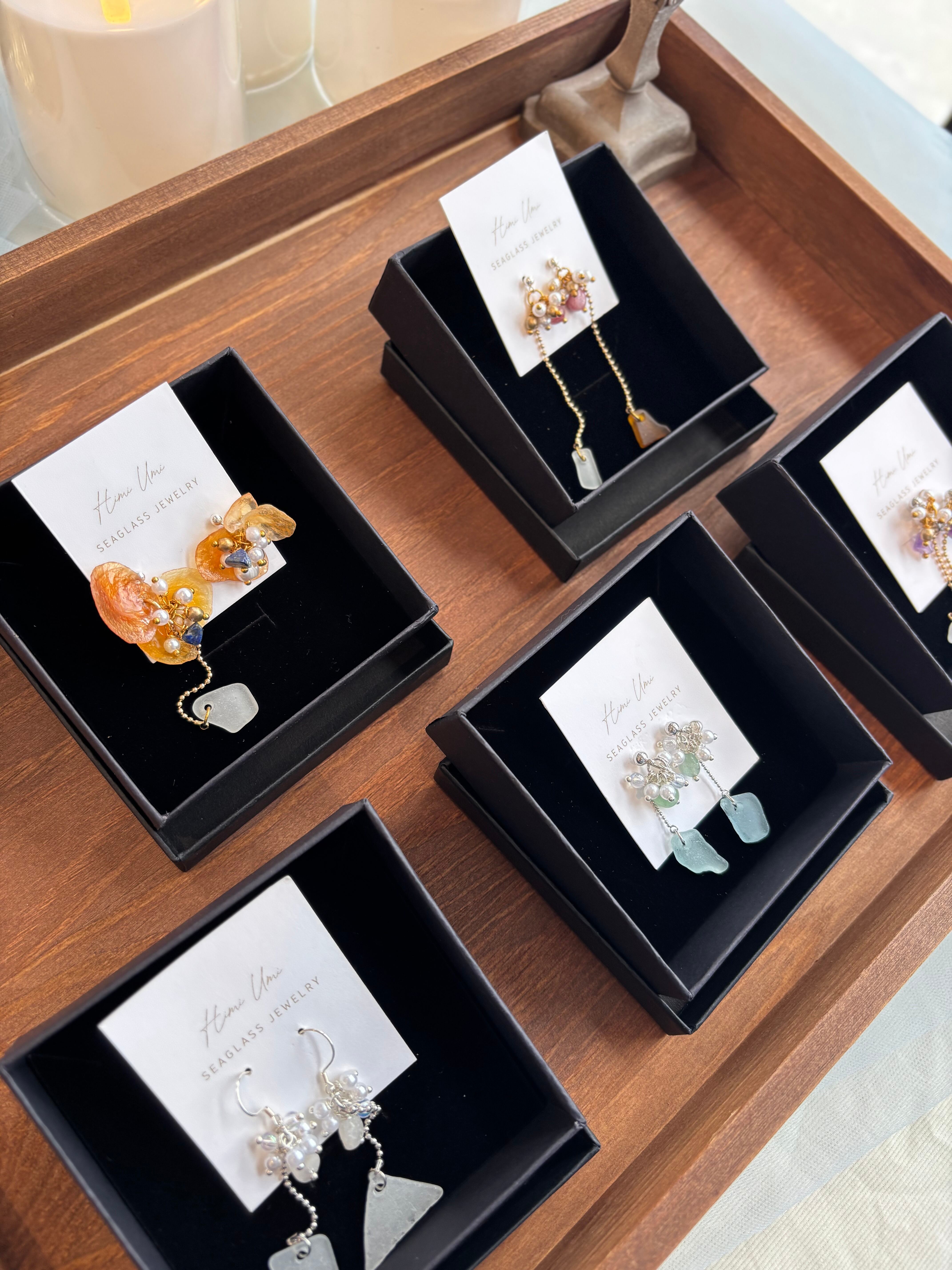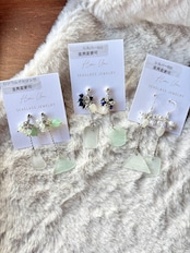 自然の美しさを感じる、天然石とシーグラスのピアス!